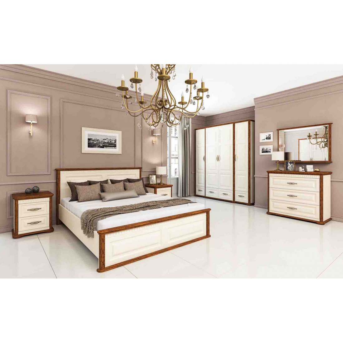 Двуспальная кровать с подъемным механизмом МН-126-01 новой серии Марсель от Мебель-Неман выполнена в комбинации цветов "крем, дуб кантри".