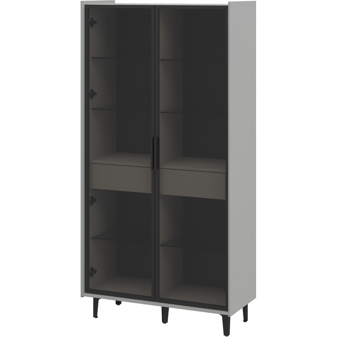 Витрина: стекло с тёмной тонировкой, аллюминевая рамка,профиль 20х20мм, цвет: черный брашированный