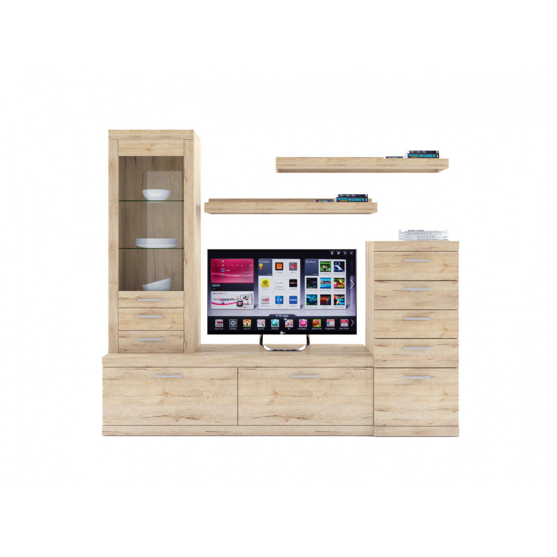 2. 4 варианта тумб RTV с выдвижными ящиками на шариковых направляющих. 2 размера надставных полок для RTV-тумб (полка TVB и полка TV), позволяющих установить выше телевизор. Варианты навесных полок, соответствующих по размеру тумбам для телевизора. Тумба RTV 2S2NL имеет глубину 351 мм, что позволяет составить модули, имеющие такую же глубину, в одну линию без выступающих элементов.