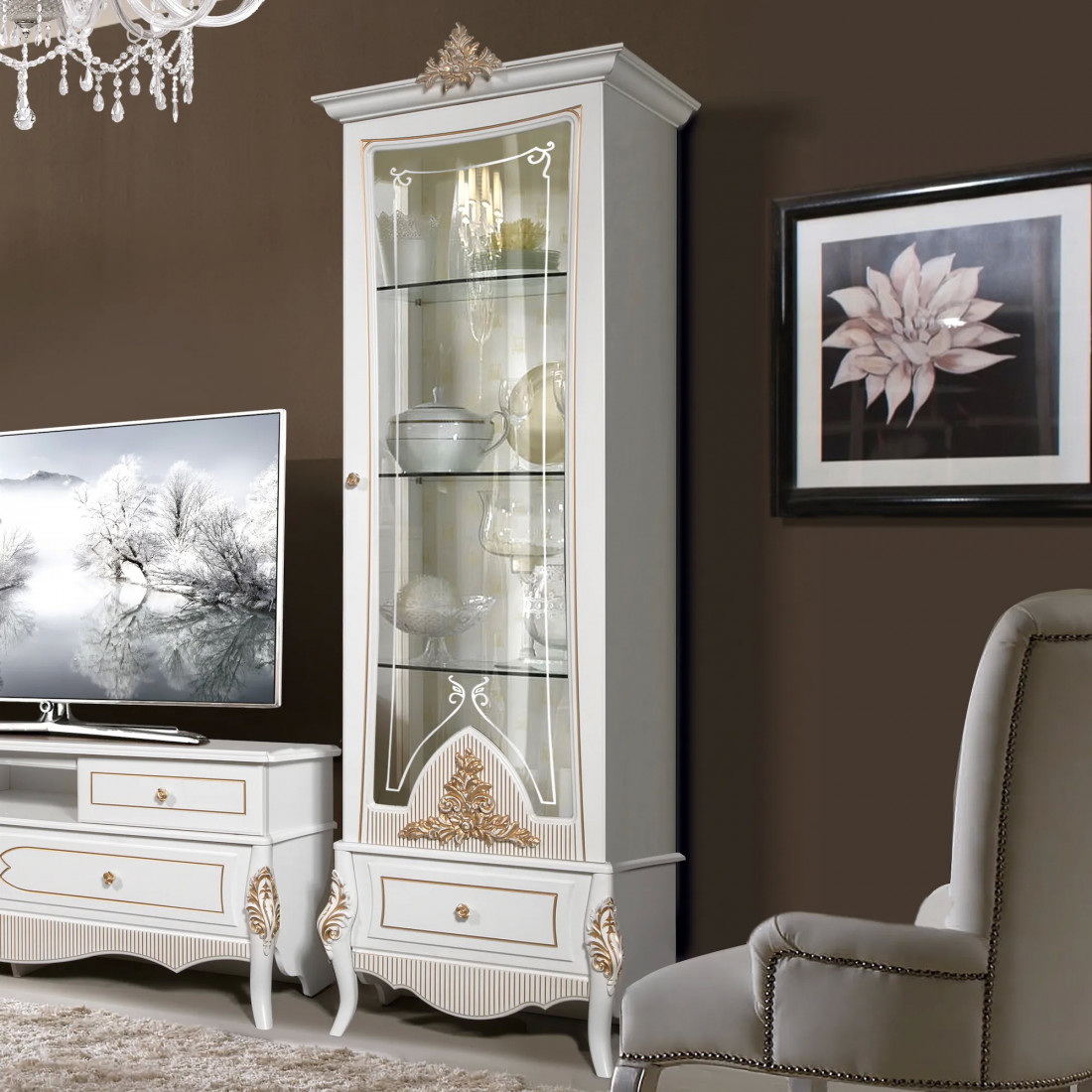 Тумба под тв гостиную Стелла (белый золото)